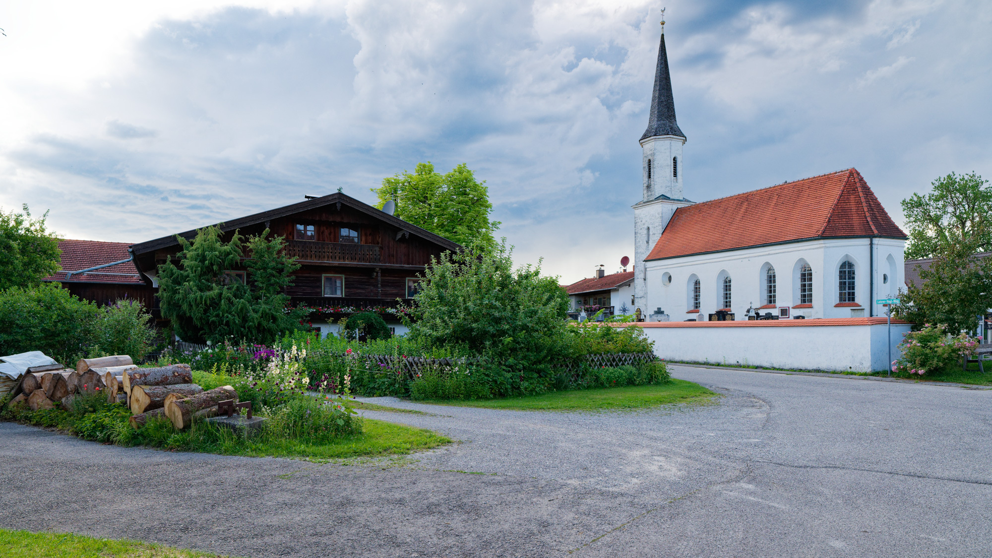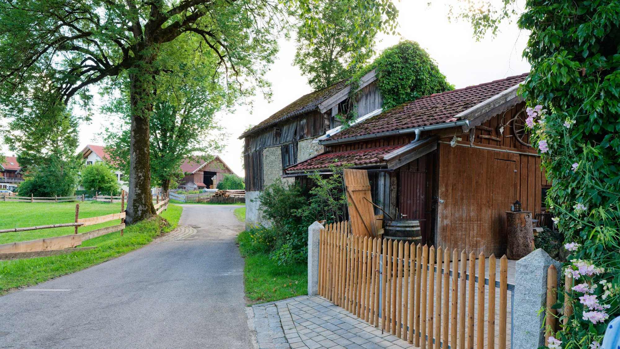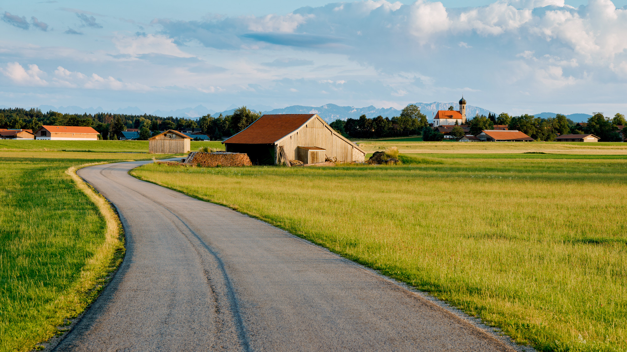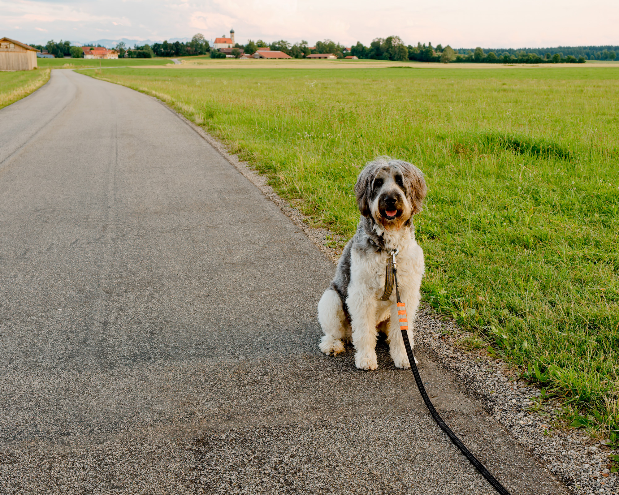 From Potsdam it was a day on the autobahn, covering 610 kms to get south of Munich to a gasthaus in the Bavarian countryside called Landhotel Gasthofbaiernrain. It was literally out in the fields but was busy with both dinner guests and travelers from northern Europe overnighting on their way south. Behind the hotel we discovered a very neat and tidy Bavarian village when taking Cooper for a pee. Across the road were open fields and a view to the mountians in the distance and the church tower of the next village.
