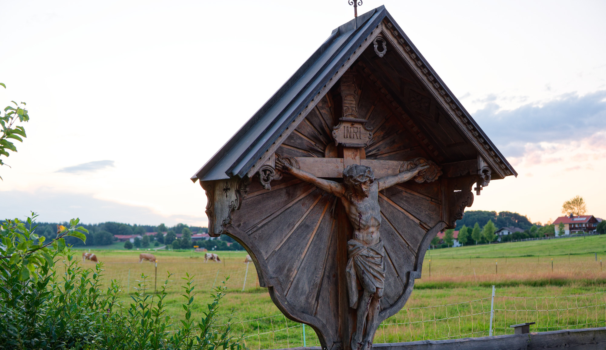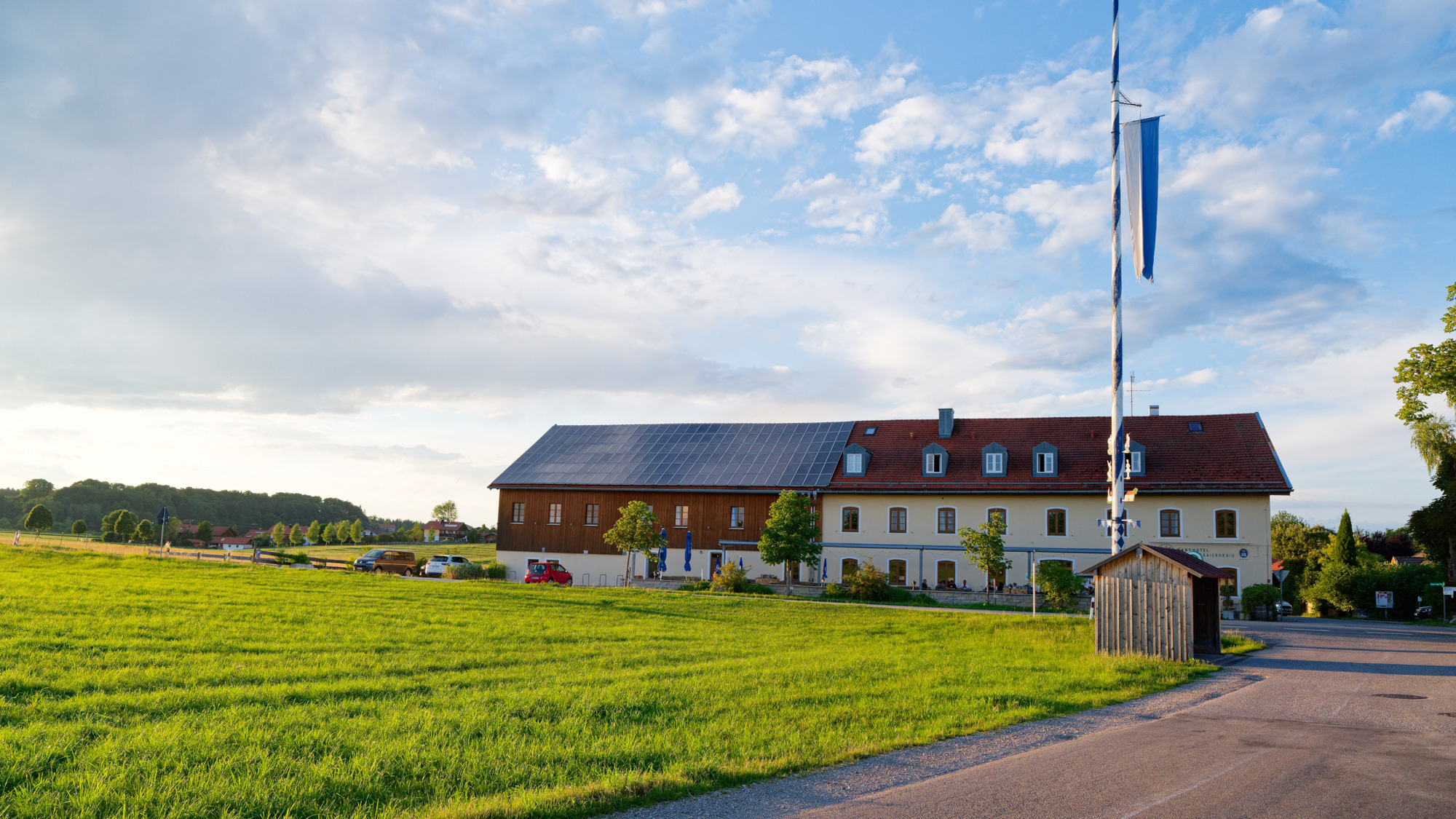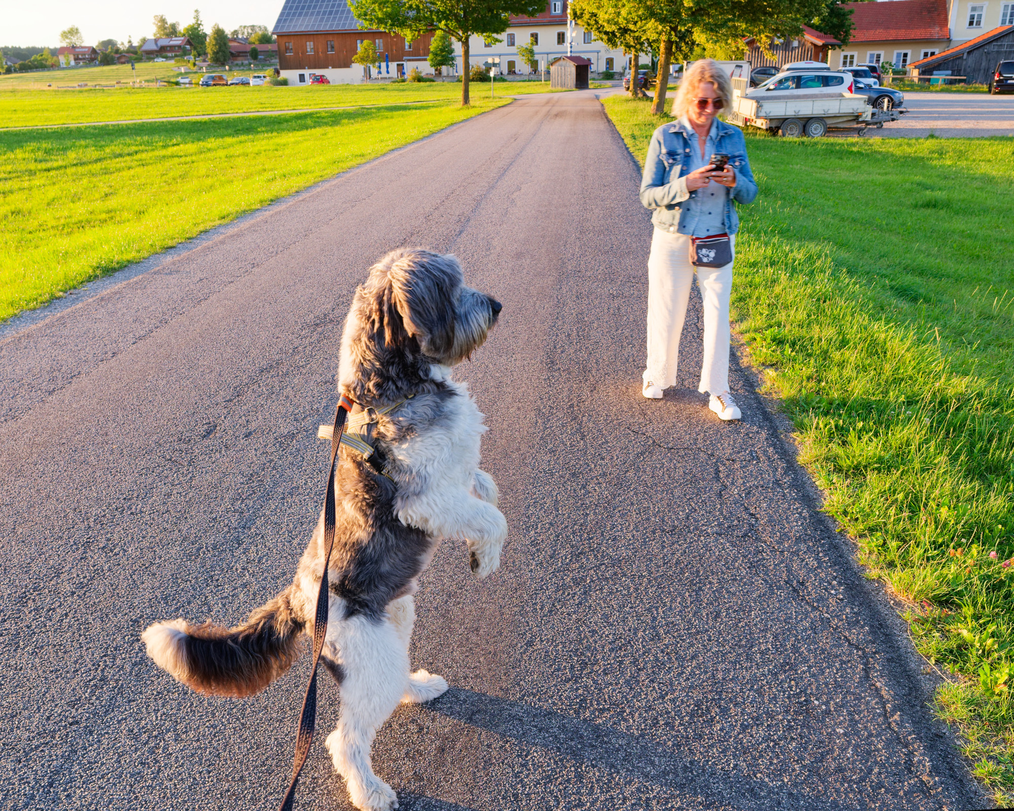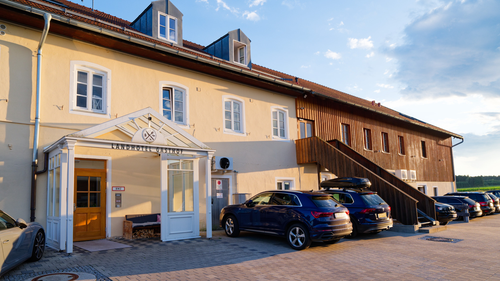From Potsdam it was a day on the autobahn, covering 610 kms to get south of Munich to a gasthaus in the Bavarian countryside called Landhotel Gasthofbaiernrain. It was literally out in the fields but was busy with both dinner guests and travelers from northern Europe overnighting on their way south. Behind the hotel we discovered a very neat and tidy Bavarian village when taking Cooper for a pee. Across the road were open fields and a view to the mountians in the distance and the church tower of the next village.