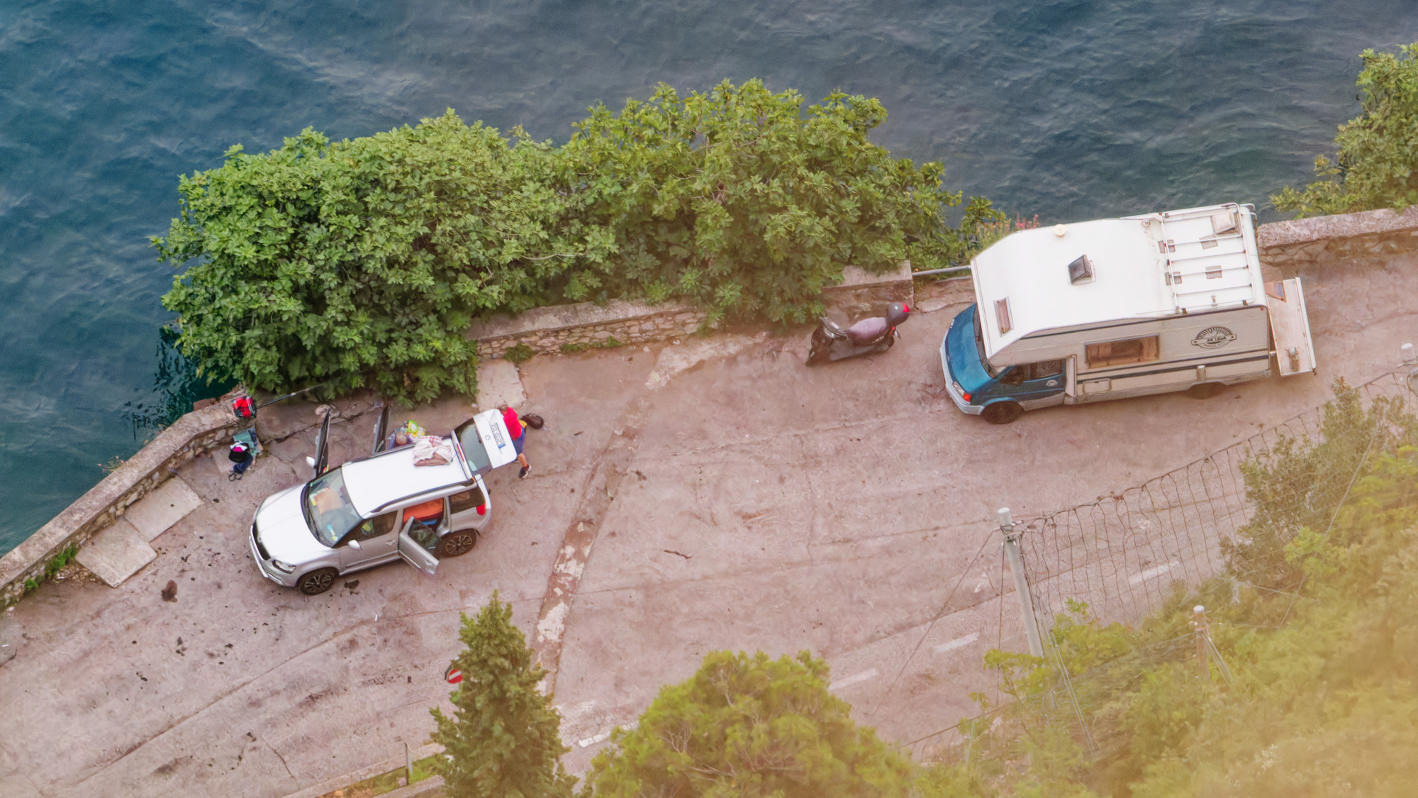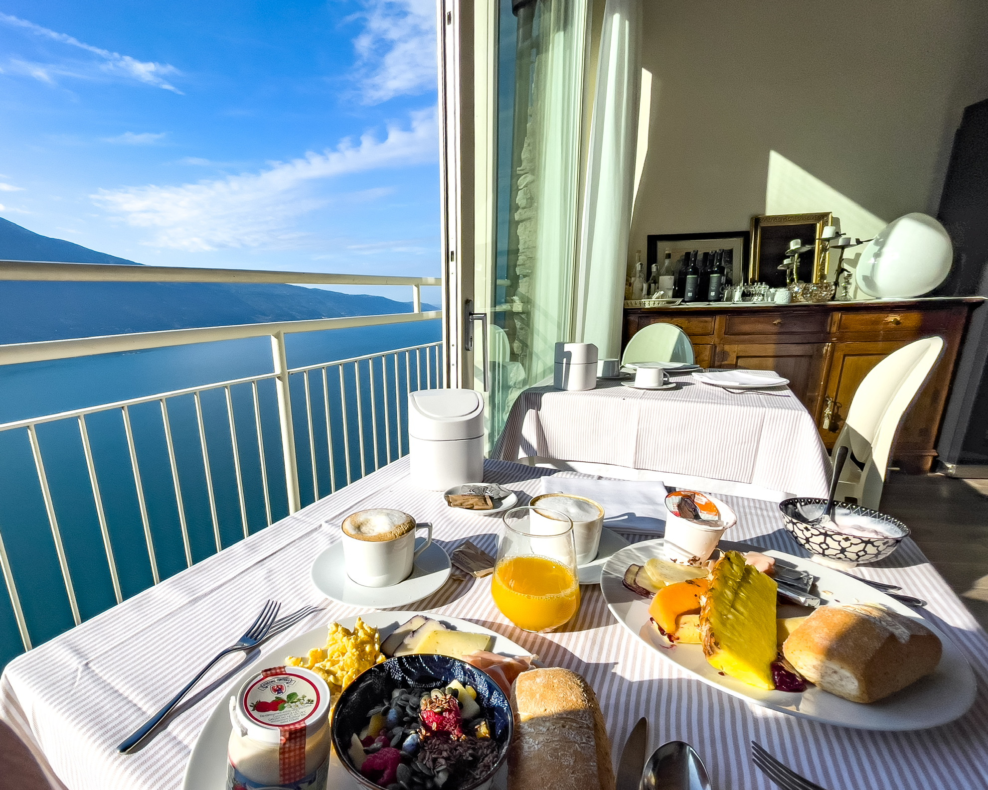 Breakfast on the edge of the cliff watching the cloud shadows drift across the surface of the lake. We make plans to circumnavigate the lake. It’s about 160 km but it is likely to take us all day as there is lots of traffic and winding roads and we want to do some stops on the way.