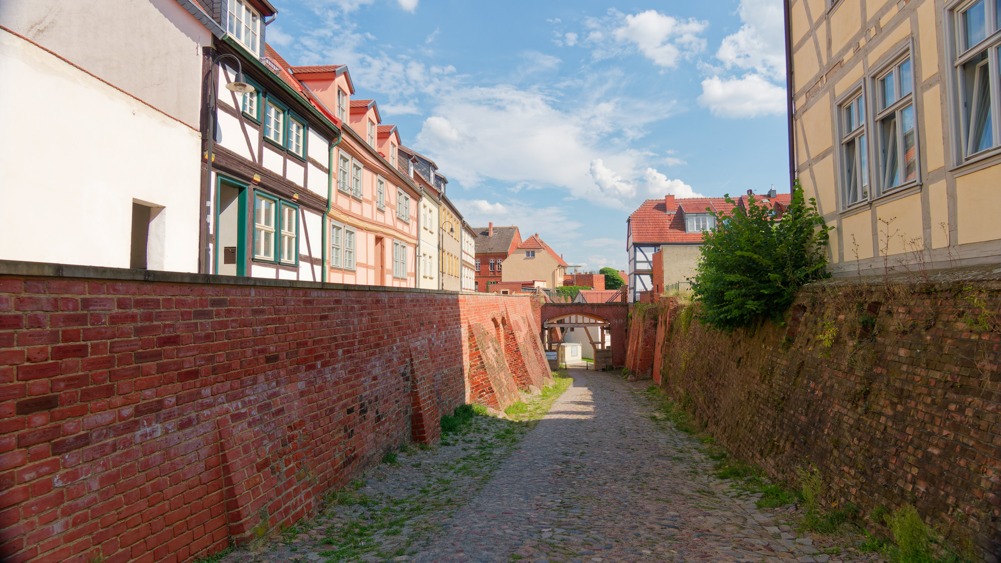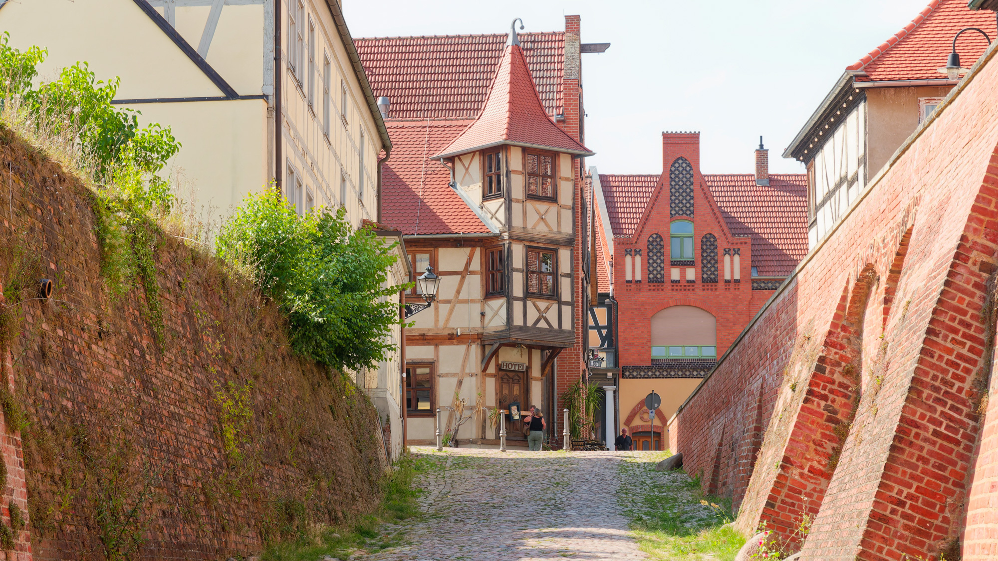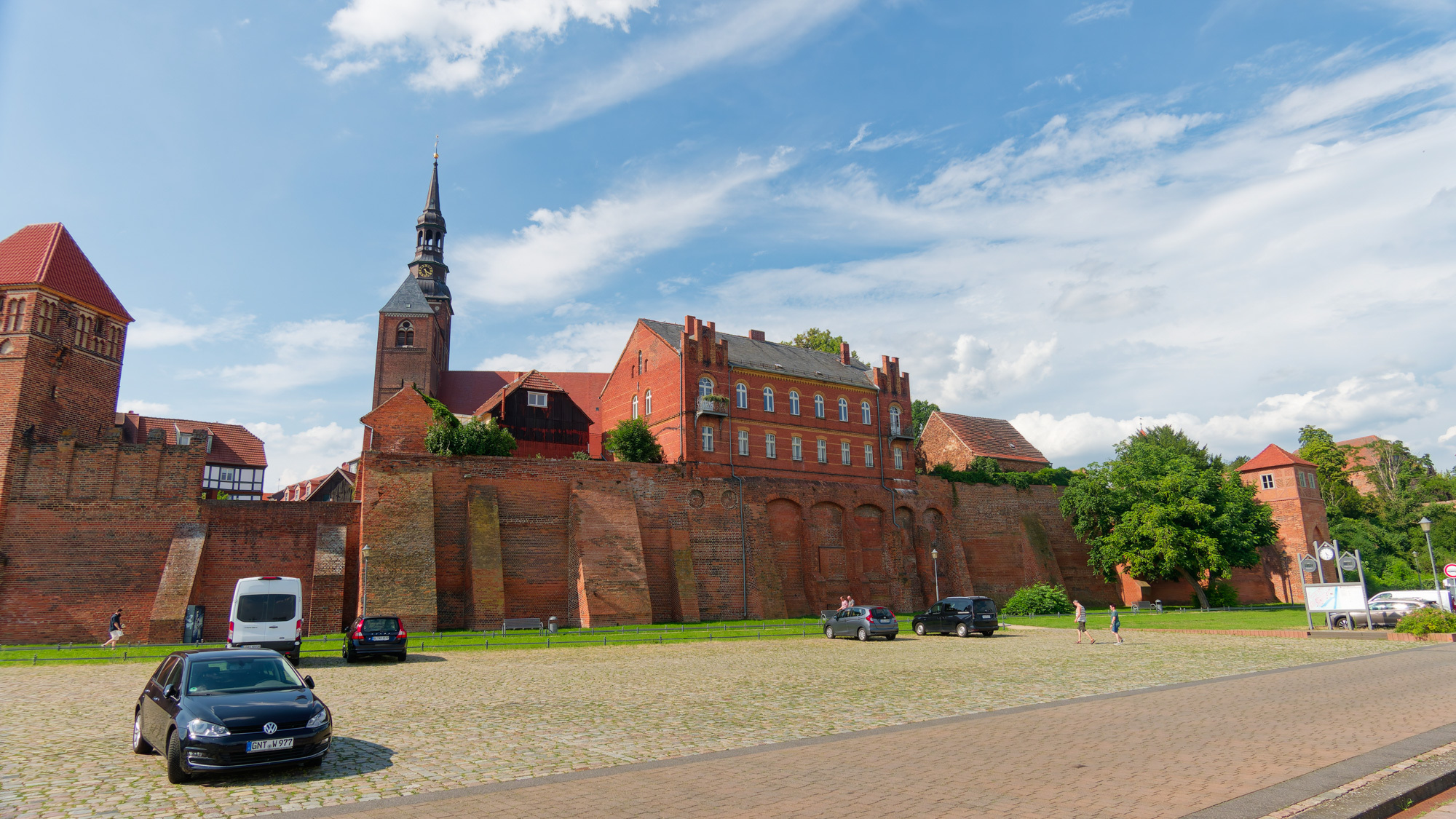 We arrived at the hotel in Tangermünde at 3 pm and could check in and still have plenty of time to look around. Here there was more to see. A small walled township on the banks of the Elbe with well preserved old half-timbered buildings, plenty of biergartens, restaurants and pubs. We walked around, had a drink, and then when and had a meal at a Greek(!) restaurant with a biergarten.