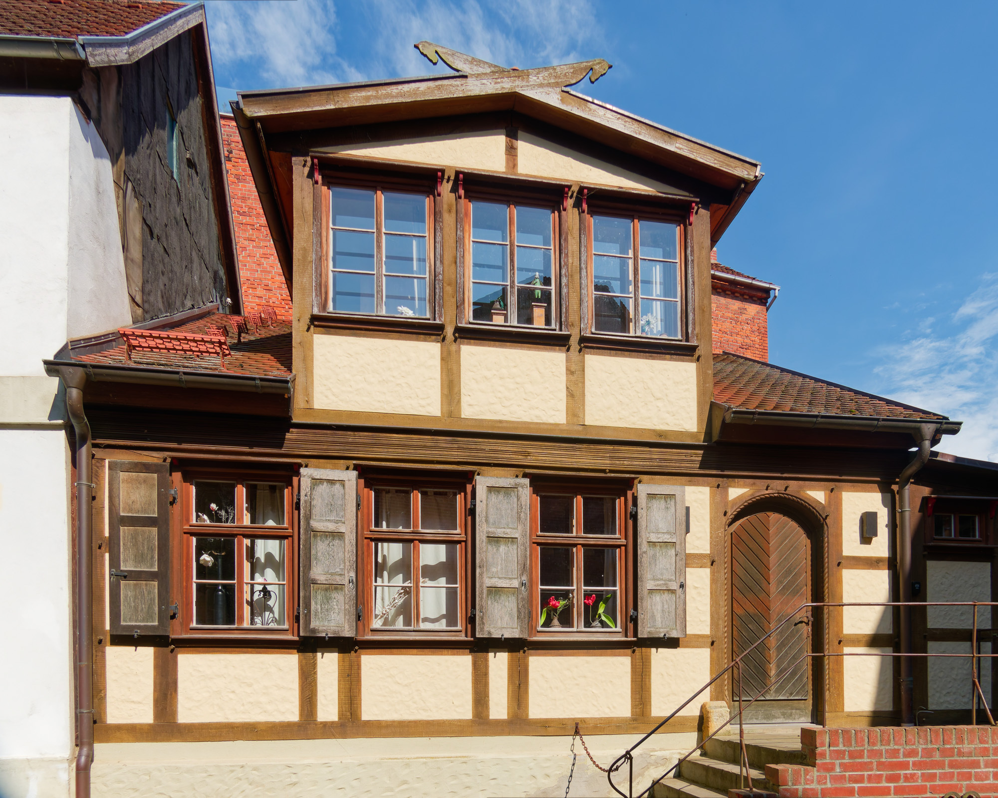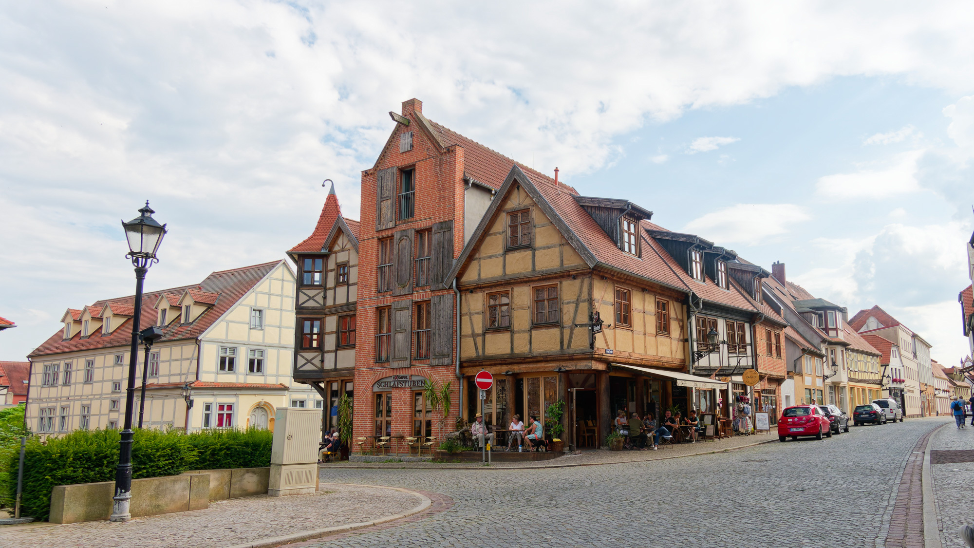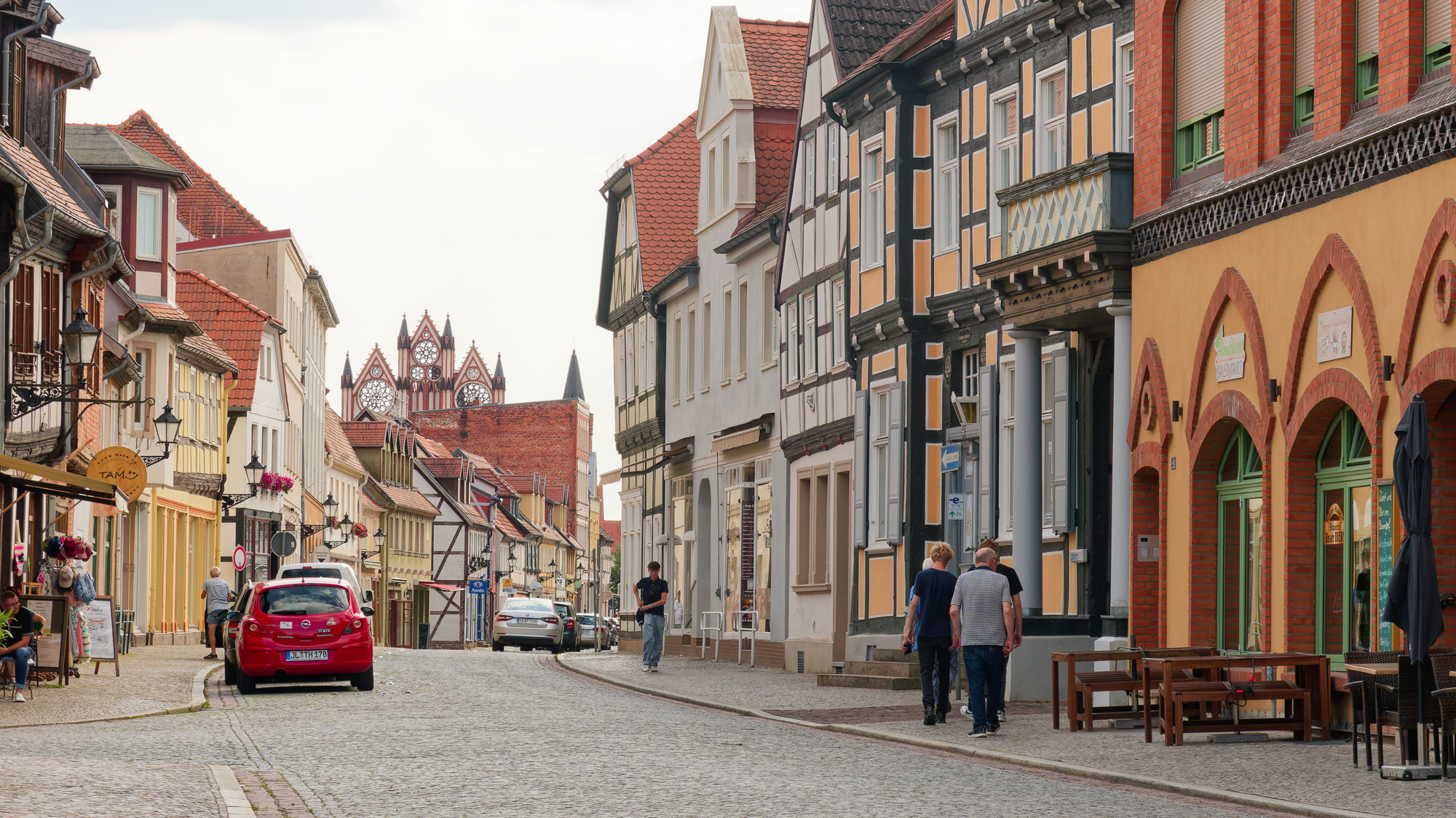 We arrived at the hotel in Tangermünde at 3 pm and could check in and still have plenty of time to look around. Here there was more to see. A small walled township on the banks of the Elbe with well preserved old half-timbered buildings, plenty of biergartens, restaurants and pubs. We walked around, had a drink, and then when and had a meal at a Greek(!) restaurant with a biergarten.
