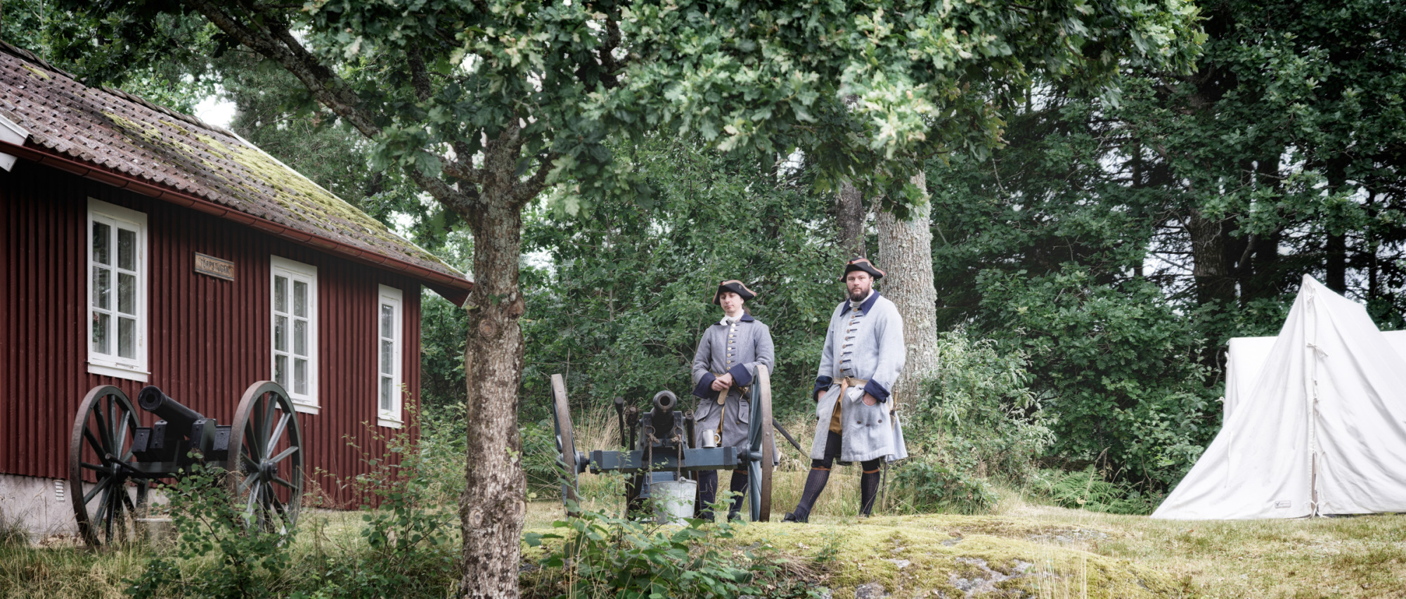 Three distinguished looking gentlemen in white shirts, ties and pressed trousers are on a small stage playing rockabilly. The audience is enthusiastic as their band keeps the beat with the ignition ball engines down by the tractors. This year there are a bunch of carolean soldiers with canons and tents camped over by the edge of the woods. Unclear what they are doing there but they add to the spectacle. Maybe they are there to keep the peace?
