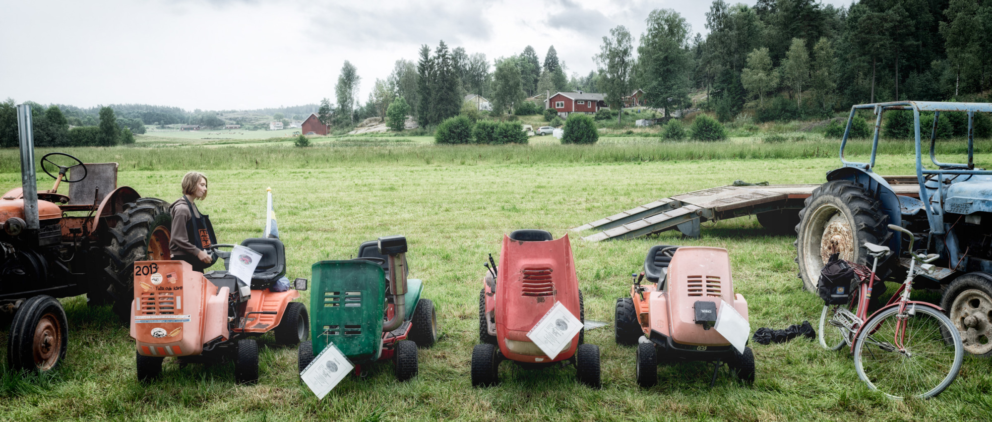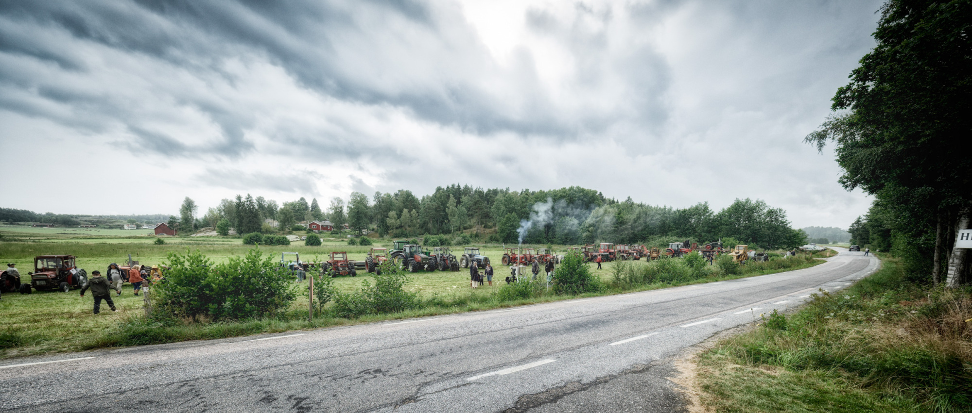 It was quite a crowd despite the weather. Local farmers and their families mixed with summer guests and the odd German tourist that had managed to find their way here, or just stumbled upon it accidentally. “Lantmännen” caps, fleece jackets with hiviz trimmings, and ear protectors with antennae, mix with flipflops, hipster man buns, Fjällräven raincoats, and selfie-snapping smart phones. To still their hunger and quench their thirst there are hamburgers, hotdogs, and freshly made waffles with jam and cream, and coffee for sale in a barn for next to nothing.